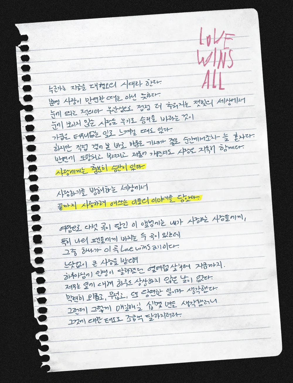 실제로 앨범에 대해 수기로 작성한 글이 함께 공개되어 더욱이 공감을 자아냈다.