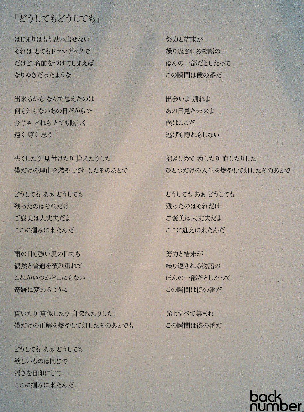 Back number (백넘버) - どうしてもどうしても (어떻게 해도, 어떻게 해도) [가사/발음/해석]